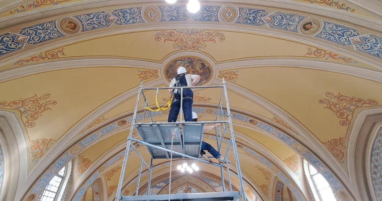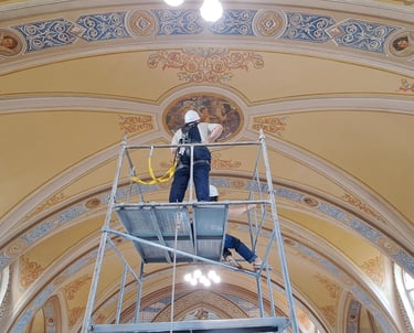 Realizamos prospecções estratigráficas para identificar camadas de acabamento, cores originais e elementos decorativos ocultos nas superfícies históricas. Esse trabalho técnico-científico orienta decisões de restauro, garantindo autenticidade e respeito à história material.